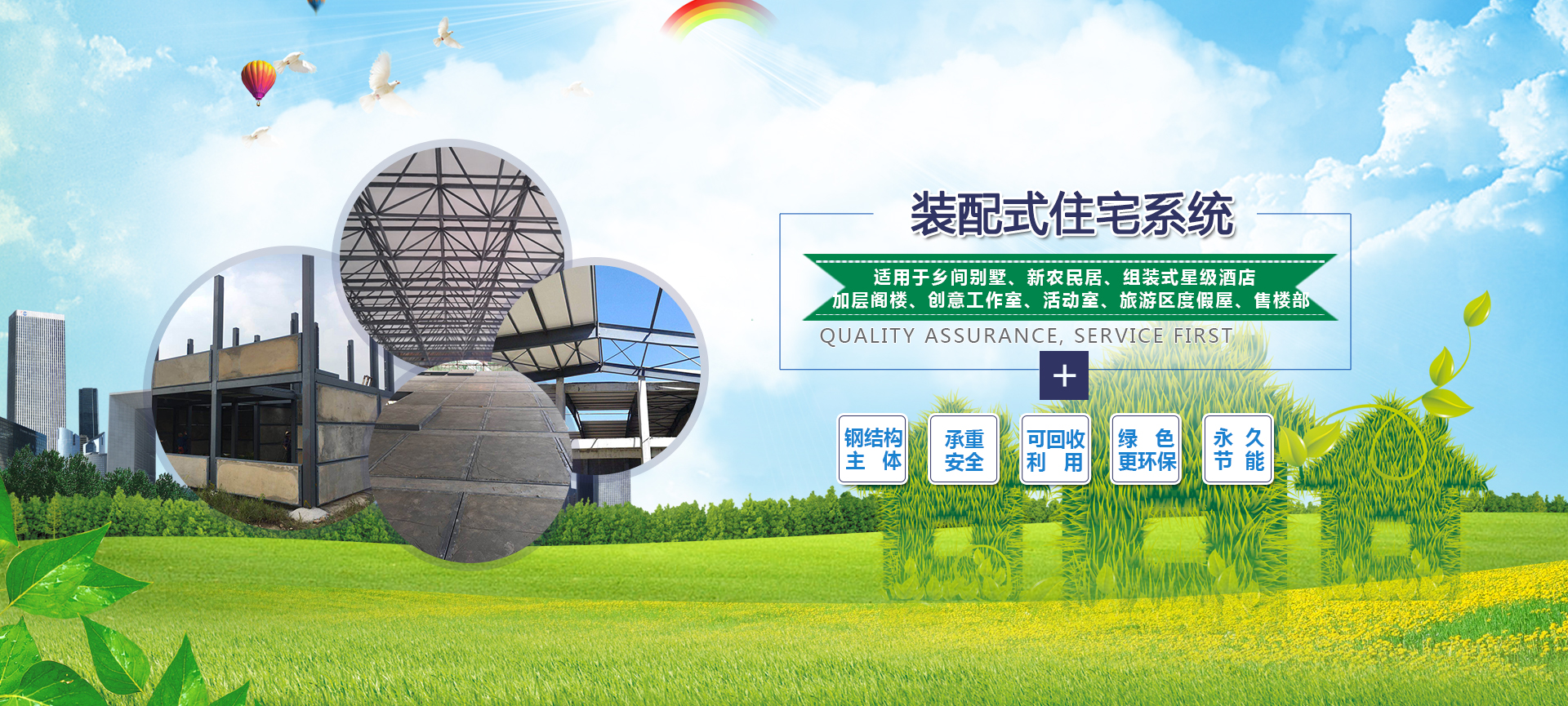 公司奉行“科技無限、追求不止、降低能耗、共建綠色家園”的宗旨,經過多年的研究、實踐和應用,完善了鋼骨架輕型板(含大型屋面板、網架板、內外墻板、樓層板、異型板)的整套產品體系,對國家禁排的大型工業企業生產、防火等功能為一體,制造產生的廢渣、肥料,還有農村的秸稈等進行了工業產品組成的二次利用,其產品集輕質、保溫、承重、隔熱、房結露、防火等功能為一體,是一種高性價比的新型板材。在此基礎上,我公司研發生產的低碳集成快速組裝(模塊式裝配式)節能生態房屋作為現代化房屋建筑的一大亮點,將在項目地進行大批量的生產并與實際相結合。該產品投放市場后,既滿足了現代智能生活對建筑市場的高要求,又填補了國內建筑板材行業的空白,為四川省以至于全國各行各業的經濟發展產生重要的推動力,做出了應有的貢獻。